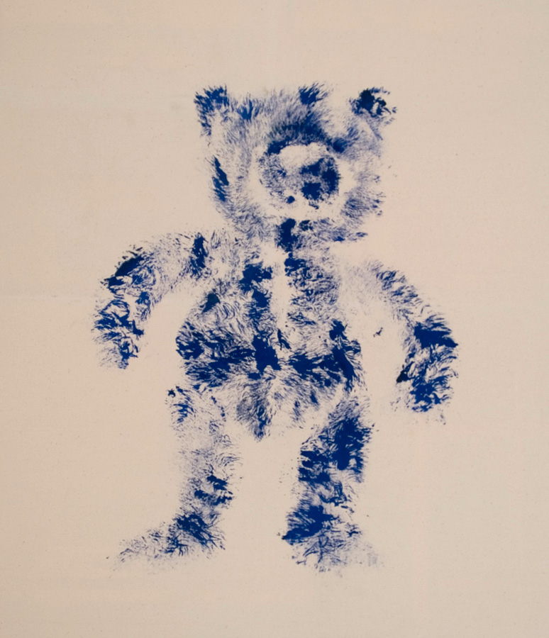 Indigo Child, 148x114cm, fabric dye and oil stick on canvas, 2015